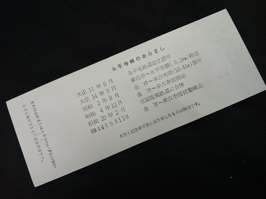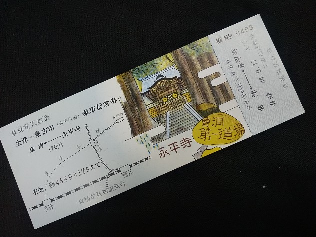 【記念乗車券】 京福電気鉄道 永平寺線記念 昭和44年 裏に少し汚れ箇所有 状態 優 |