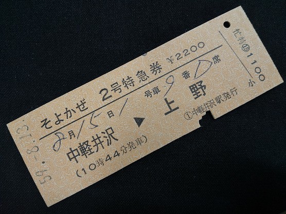 【硬券 特急券】 そよかぜ2号 中軽井沢→上野 昭和59年8月13日 やや焼有 状態 優 |