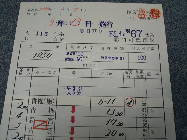 【運転士スタフ】 門司機関区 上り貨物用 スタフ1枚 EL4組 1050列車 香椎→門司 使用感有 状態 優 |