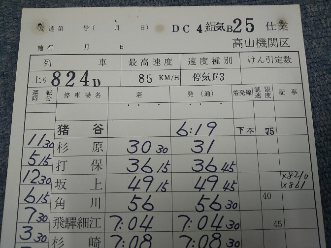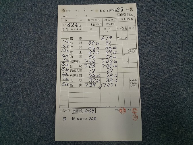 【運転士スタフ】 高山機関区 スタフ1枚 上り824D 猪谷→高山 使用感有 状態 優 |