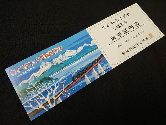 【乗車証明書】 さよなら士幌線 しほろ号 昭和62年 やや擦れ有 状態 良 |