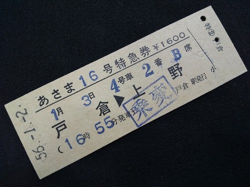 【硬券 特急券】 あさま16号 戸倉→上野 昭和56年1月2日 やや焼有 状態 優 |