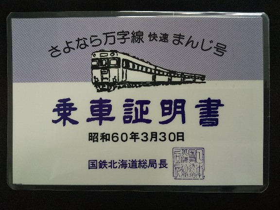 | 【乗車証明書】 さよなら万字線 快速まんじ号 昭和60年3月30日 状態 優 |