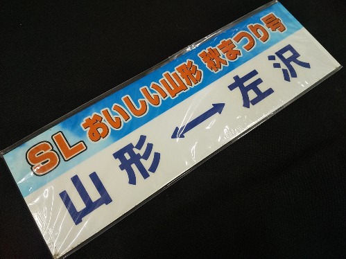 【ミニサボ】 SLおいしい山形 秋まつり号 山形⇔左沢 アルミ板 21×6.5cm 状態 優 |