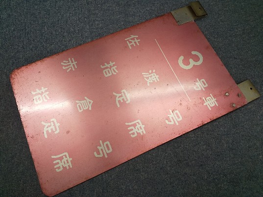 【乗車口板】 佐渡号・赤倉号 3号車 指定席 アルミ板 40×25cm 擦/使用感良好 状態 優 |