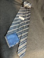 「横浜市交通局ネクタイ」 紺色・銀色ストライブ柄/ 紺と銀のお洒落な デザイン 状態優 |