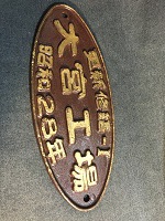 「更新修繕1 大宮工場 昭和28年」 日本国有鉄道 鋳鉄製/ 茶色・文字部分 金色塗装仕上 両脇に取付用穴2つ有 状態優 |