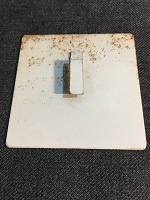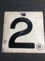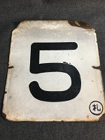 「5 〇札/無地」 白色ホーロー板製/ 黒色浮文字仕上 上部に手掛け用に 折り曲げ部分有 サイズ/16.5/15㎝ 使用による細かな傷、 札受痕、 塗料剥げ、錆等有 状態優 |