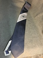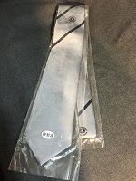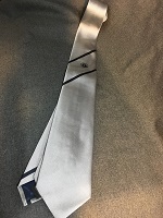 「東急バス 夏ネクタイ」 ライトグレー地/ ダークグレー ストライブ柄 両面にロゴマーク入 撮影のため開封 未使用 |