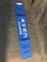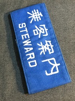 「乗客案内」 旭興産株式会社 昭和48年3月製 青色生地製/ 白色刺繍文字仕上/ サイズ/7.5/41㎝ 裏面中央部に固定用 安全ピン有 左側に固定用穴6つ/ 右側に固定用穴2つあり 固定用紐付 状態優 |