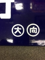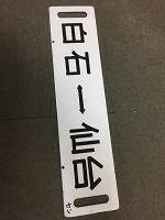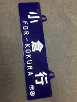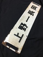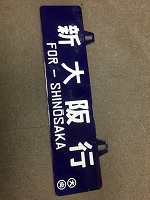「新大阪行〇大〇向/ 小倉行〇大〇向」 紺色ホーロー板製/ 白文字浮文字仕上 吊りサボ 経年による若干の 塗料剥げ等有 状態優 |