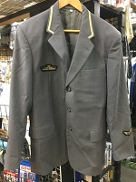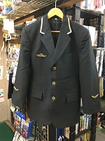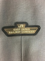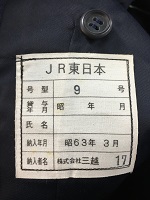 「JR東日本旧冬接客上衣」 色 ダークグレー サイズ/YA4 肩幅46/丈70/胸囲95㎝ 右胸と両袖にワッペン付 表示紙付(営業・車掌型) |