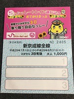 「ふなっしートレイン 運行記念乗車券」 新京成電鉄 H29.8.25日付 厚紙製台紙付 サイズ/A5版 2つ折 D型硬券4枚 五香から240円/ 松戸から260円/ 三咲から240円/ 京成津田沼から 260円 の各区間乗車券と 新京成線全線 乗車券のセット 状態優 |