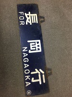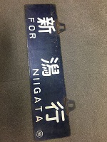 「長岡行〇岡/ 新潟行〇岡」 紺色ホーロー板製/ 白文字浮文字仕上 リペット吊り板 使用による細かな傷、 塗料剥げ、 若干の錆等有 状態優 |