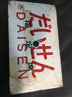 「だいせん 指定席〇米/ 無地」 白色塗装板製/ 赤色浮文字仕上 指定席文字 ステッカー貼付仕上 中央部に手掛け穴 1つ有 細かな傷、 塗料剥げ、角部に 若干錆有 状態優 |