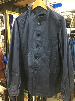 「国鉄一般冬上衣」 色 紺グレー サイズ/3号 肩幅46/丈66/胸囲100㎝ 右胸・両腰部に ポケット付 白タグ・仕付糸・ 紺リボン付 未使用 |