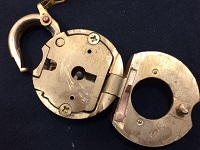 | 【鉄道装備品】 「現金輸送錠前」 真鍮製/直径:4.2p 鍵付き/動作良好 刻印:鐡道 使用による傷有 状態 優 |