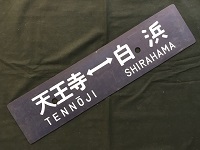 【行先板】 「天王寺⇔新宮/天王寺⇔白浜」 プラスチック板/濃紺色 サイズ:60×14p 傷み・汚れ有 状態 良 |