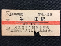 【硬券入場券】 「(小田急電鉄)生田駅」 46.4.20 生田駅発行 NO.3617 若干汚れ有 状態 優 |