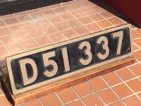| 【記念ナンバープレート】 「D51337」 鉄製/2枚貼り合せ サイズ:78.5×20×厚さ1cm 木製台・金属留め具あり 錆・汚れ有 状態 良 |