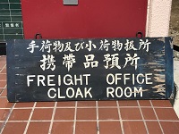 | 【案内板】 「手荷物及び小荷物扱所 /携帯品預所」 木製塗装板 本体サイズ:81×30.5p 塗装劣化・はがれ有 状態 良 |