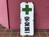 【表示板】 「安全第一」 ホーロー 黒浮文字 サイズ:45×18cm ホーローはがれ・サビ有 状態 良 |
