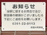 【表示板】 「お知らせ/信濃大町駅長」 薄プラスチック板 サイズ:30×20p 傷み・汚れ有 状態 良 |