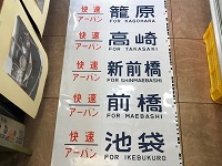 | 【行先板】 「上野(急行草津)万座鹿沢口/ 上野(急行)万座鹿沢口 ウエ」 ホーロー 黒彫文字 サイズ:64×14p 若干傷み有 状態 優 |
