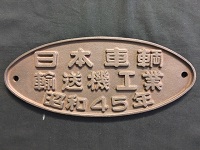 【楕円銘板】 「日本車輌/輸送機工業/ 昭和45年」 鋳鉄製 サイズ:26×11p 状態 優 |