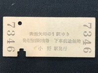 【乗車券】 「塩尻←小野→辰野」 2.2.2 □東/JR地紋 小野駅発行 No.7346 若干汚れ有 状態 優 |