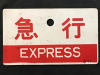 | 【種別板】 「急行 〇門サキ」 プラスチック板 サイズ:24.3×14.3p 汚れ有 状態 良 |