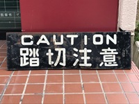 【表示板】 「踏切注意」 鉄製塗装板/文字貼付 保安工業製造 サイズ:75×23×奥行7p サビ・傷み・ゆがみ有 状態 良 ゆうパック(120サイズ)で発送 |