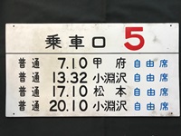 【乗車口板】 「普通 7.10 甲府」 プラスチック板 サイズ:45×24cm 傷み・汚れ有 状態 良 |