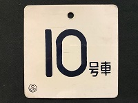 【号車札】 「10号車 ○品」 アルミ製塗装板 サイズ:9×9p 若干傷み有 状態 優 |