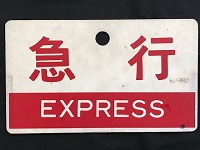 【種別板】 「急行 ○名」 プラスチック板 裏なし サイズ:24.3×14.3p 汚れ・若干傷み有 状態 良 |
