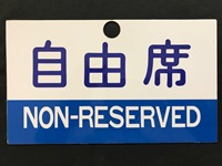 【種別板】 「指定席/自由席」 鉄製/表面コーティング サイズ:24.3×14.3p 若干傷み有 状態 優 |
