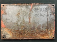【橋梁銘板】 「鐡道省 横河橋梁製作所 昭和十一年」 鉄製/ベンガラ色塗装 サイズ:30×20.5p ペン書き:標津線/イロンネベツ川 塗装はがれ・サビ有 状態 良 |