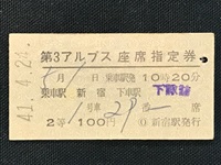 【座席指定券】 「第3アルプス」 41.5.1 乗車駅:新宿/下車駅:下諏訪 1号車29番 No.1456 汚れ・貼り痕有 状態 良 |