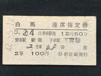 【座席指定券】 「白馬」 42.5.24 乗車駅:新宿/下車駅:下諏訪 2号車48番 No.2060 傷み・汚れ有 状態 良 |