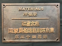 【製造銘板】 「東京石川島造船所 明治四十二年」 金属製 サイズ:31×21×厚さ0.7p 若干汚れ有 状態 優 |