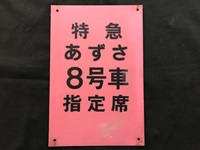 【乗車口板】 「特急あずさ」 プラスチック板 表面コーティング サイズ:30×20p 傷み・汚れ有 状態 良 |