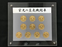 【記念メダル】 「栄光の蒸気機関車」 金属製/10個 メダルサイズ:直径3.8p プラ板でビス留 状態 優 |