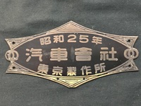 【車内銘板】 「昭和25年 汽車会社東京製作所」 真鍮製 サイズ:16×8p 下方に加工あと有 (穴あけ・一部カット) 状態 良 |
