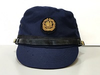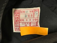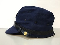 【国鉄制帽】 「SL機関士帽」 3号形/昭和43年/濃紺 頭囲:55p/調節ひも有 タグに氏名記入 使用感なし 状態 優 |