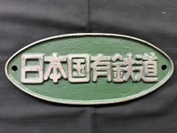 【楕円銘板】 「日本国有鉄道」 鋳鉄製/緑色塗装 サイズ:26×11p 裏面にサビ有 状態 良 |