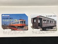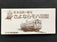 【未使用テレカ】 「さよならモハ10型」 松本電気鉄道 50度数×2枚 台紙サイズ:21×20p/二つ折り 状態 優 |