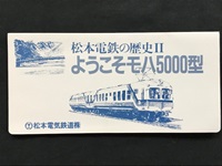 【未使用テレカ】 「ようこそモハ5000型」 松本電気鉄道 50度数×2枚 台紙サイズ:21×20p/二つ折り 状態 優 |