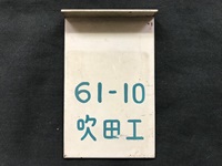 【検査札】 「61-10/吹田工」 鉄製塗装板/手書き文字 サイズ:9.5×6p 若干傷み有 状態 優 |