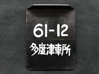 【検査札】 「61-12/多度津車所」 鉄製塗装板/手書き文字 サイズ:8×6.5p 若干傷み有 状態 優 |