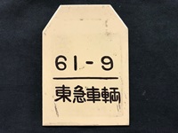 【検査札】 「61-9/東急車輌」 鉄製塗装板/手書き文字 サイズ:9.5×6.8p 若干傷み有 状態 優 |